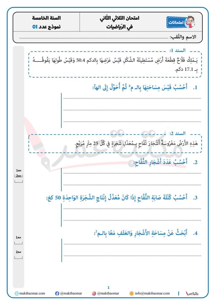 امتحانات السنة الخامسة – الثلاثي الثالث