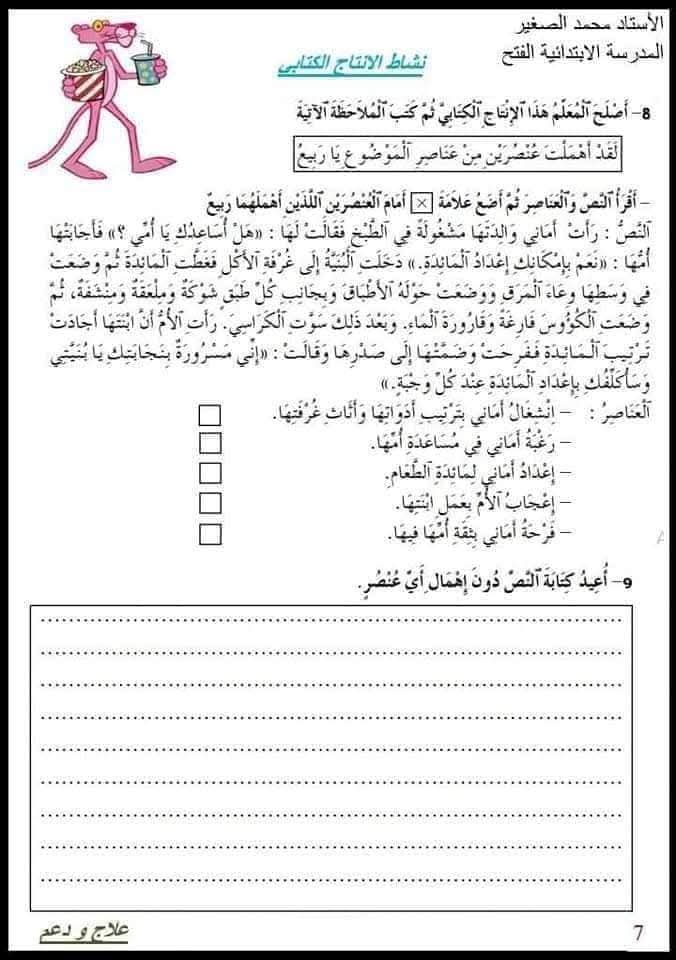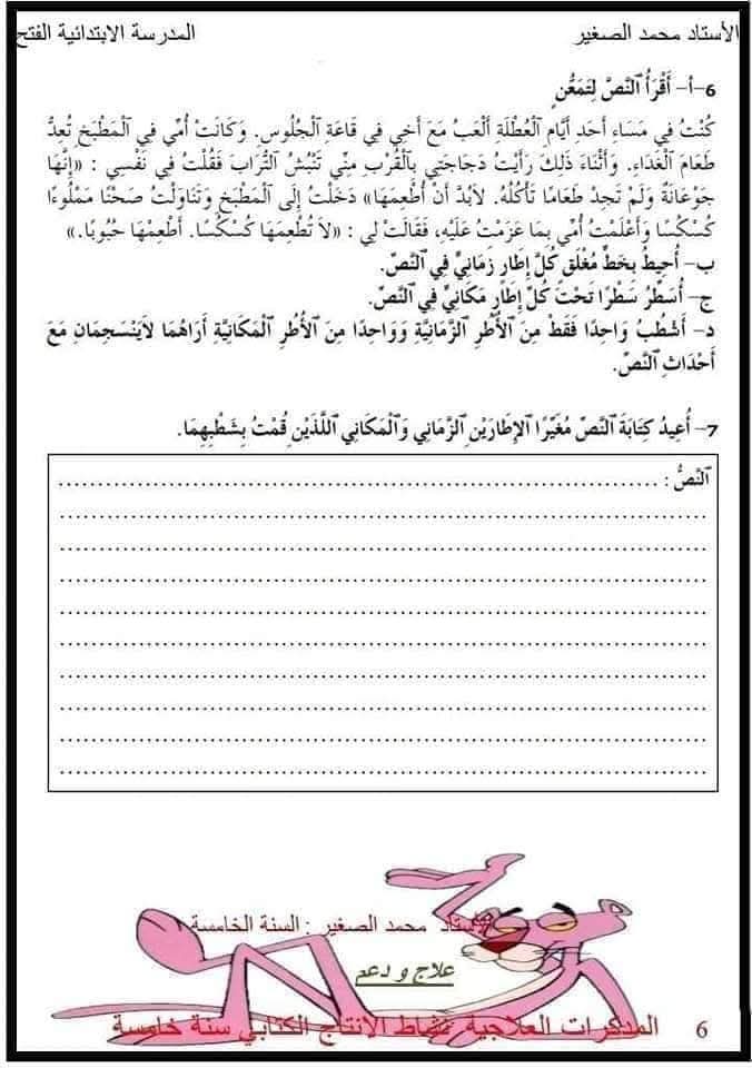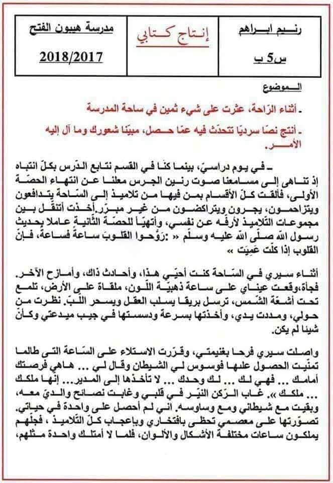انتاج كتابي لتلاميذ السنة الخامسة