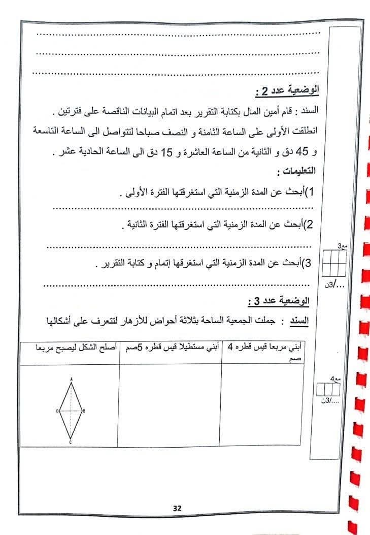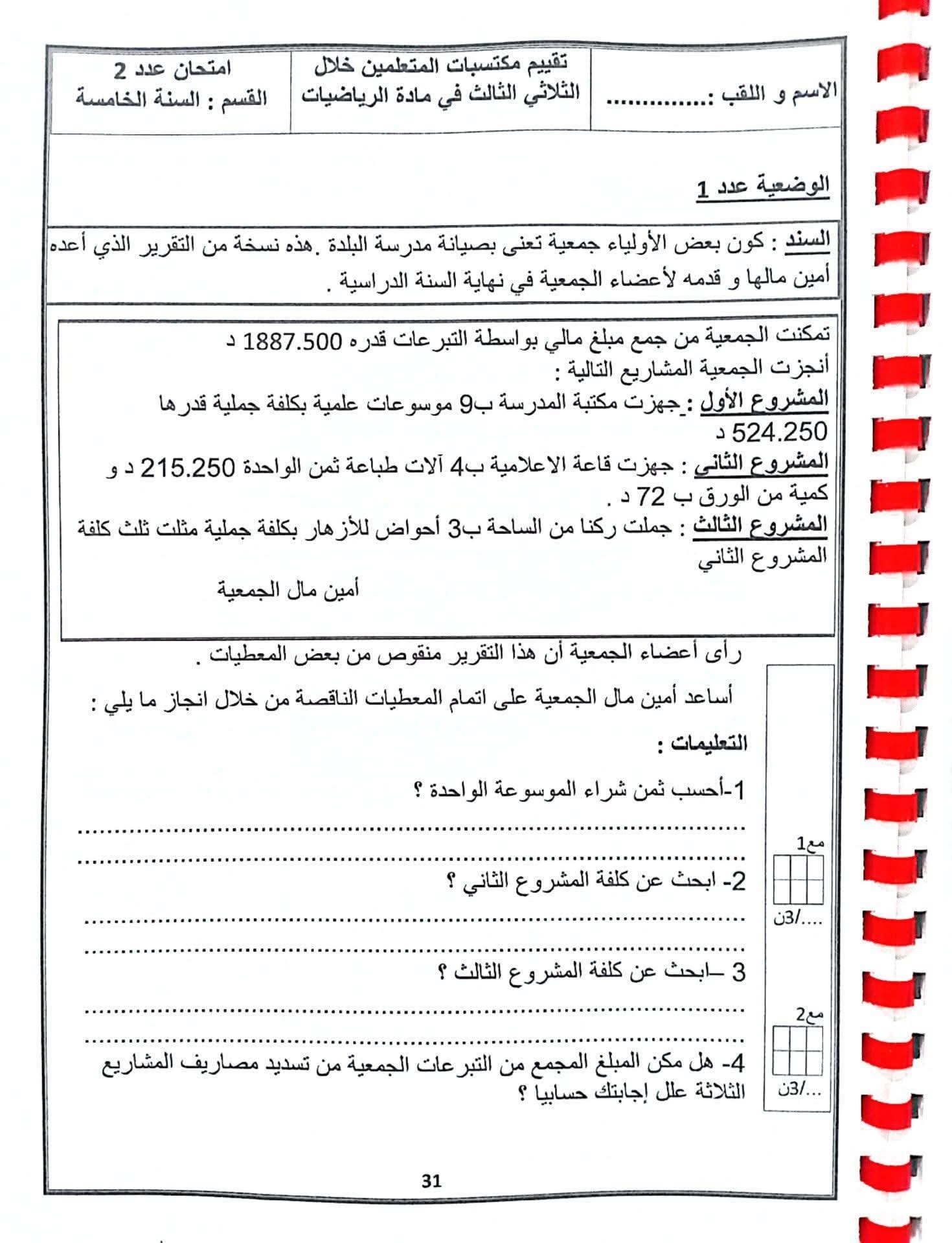 امتحانات رياضيات السنة الخامسة 5️⃣ مع الإصلاح